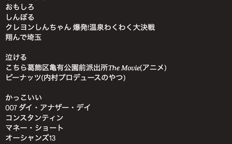 うん……?確かにどれも名作でしょうが、アクションや人中心のヒューマンドラマやアニメが多いですね。
