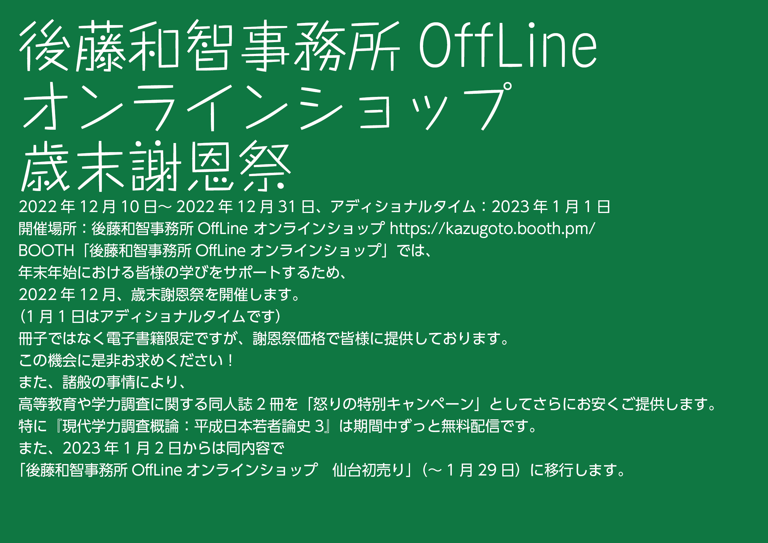 後藤和智事務所OffLine(オリジナルの評論同人誌の頒布)