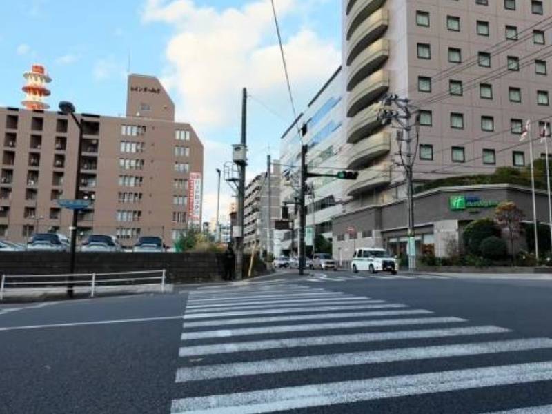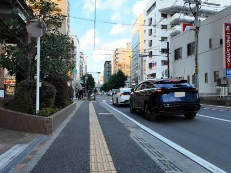 歩道の幅がだんだん狭くなります。歩行者の方の迷惑にならないよう十分注意しましょう。加えて道中には駐車場付きのコンビニがあり、車の出入りも多いです。スマホカメラばかりに気を取られていると危ないです。