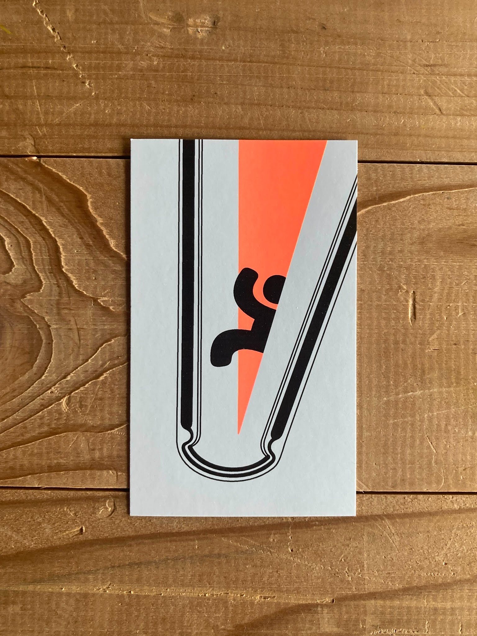 何もない空間に現れたのか、元からその場所にあるのかは誰も知る由もない謎の丸。その丸の小さな隙間に挟まっている棒人間のピクトグラム。彼は自ら入りに行っているのか、それとも引き込まれているのか。彼の顔には表情がなく感情が読めないことと、丸の形がどこか怪物の横顔のようにも見えるような気がして、ミステリアスでもあり不気味に感じます。