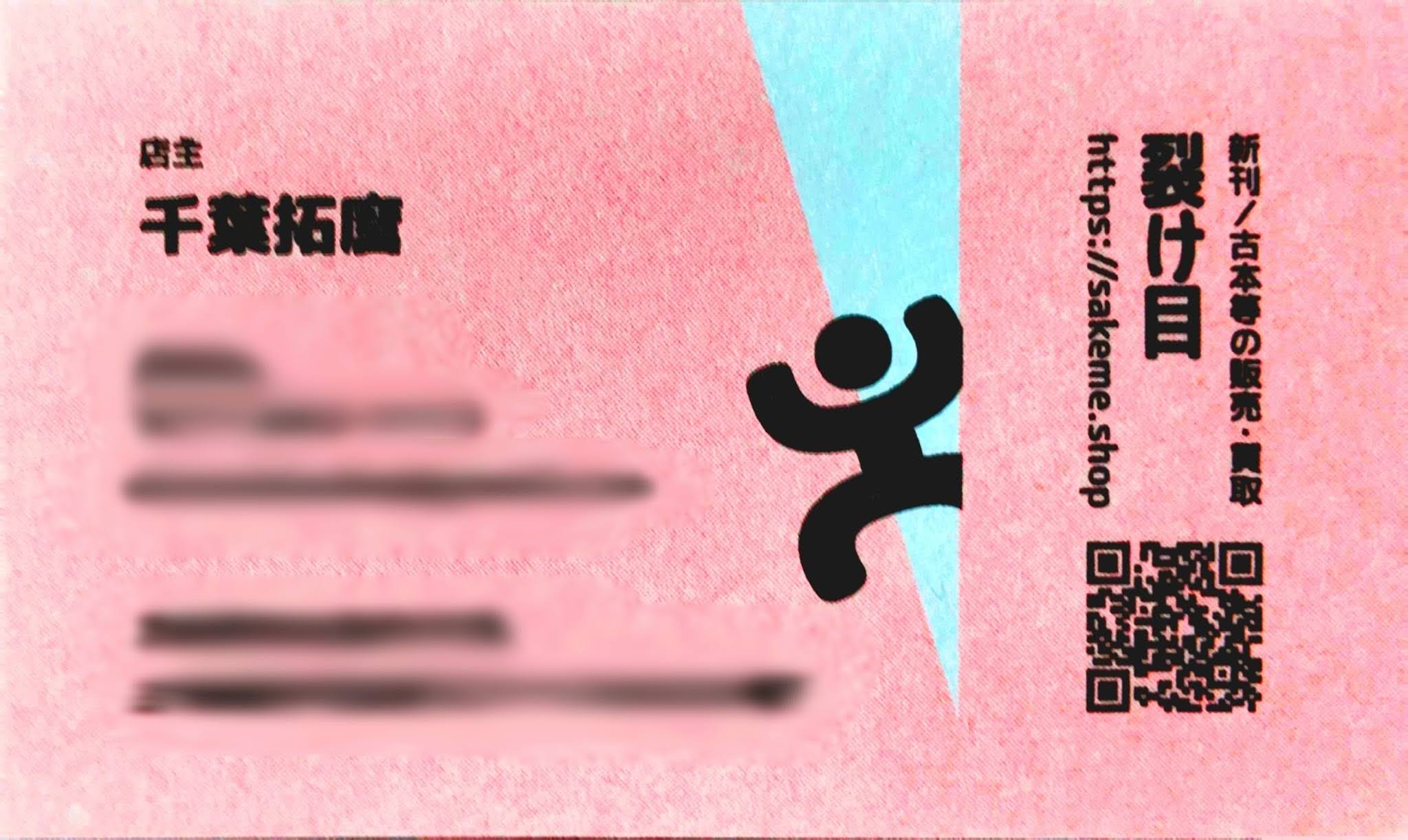 千葉【裂け目】という名前なので、そこに引き込まれるとか、逆に入っていくみたいな意図で作ってもらいました。出来上がったデザインを見てみたら、丸みがあって可愛かったんで、いいなと思ったんです。これなんかは(千葉さんの名刺)裏表にイラストが違ってて、気が利いてますよね。