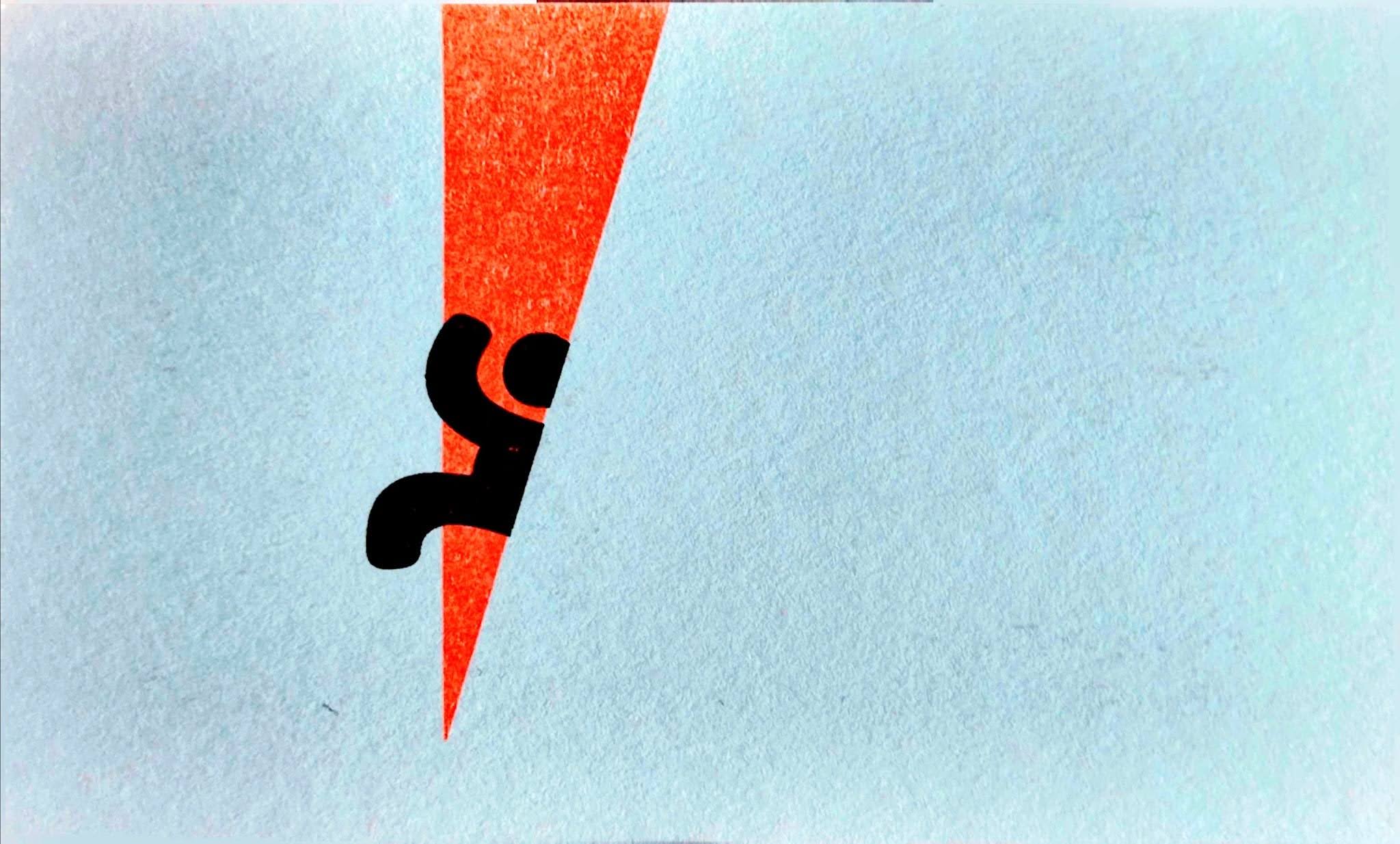 その横には『裂け目』という文字が佇んでいて、まるで丸の隙間の中に引きずり込まれるピクトグラムの彼を助けもせずじっと見続けるようです。そして「裂」や、「目」という視覚的にも生物的にも非常に恐怖感のある文字が大きく並んでいて、ピクトグラムの彼がこの後辿る運命を暗示しているかのようです。